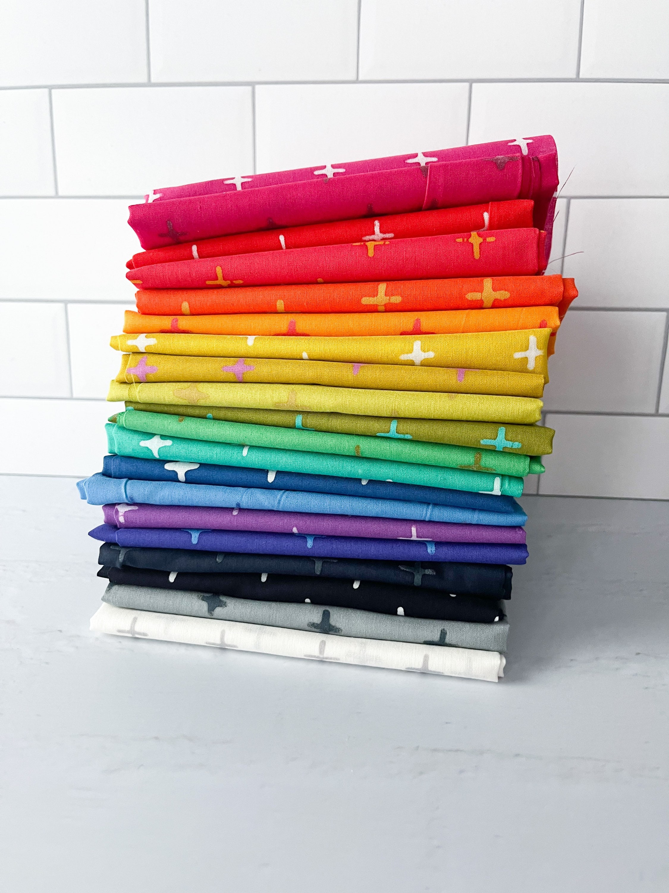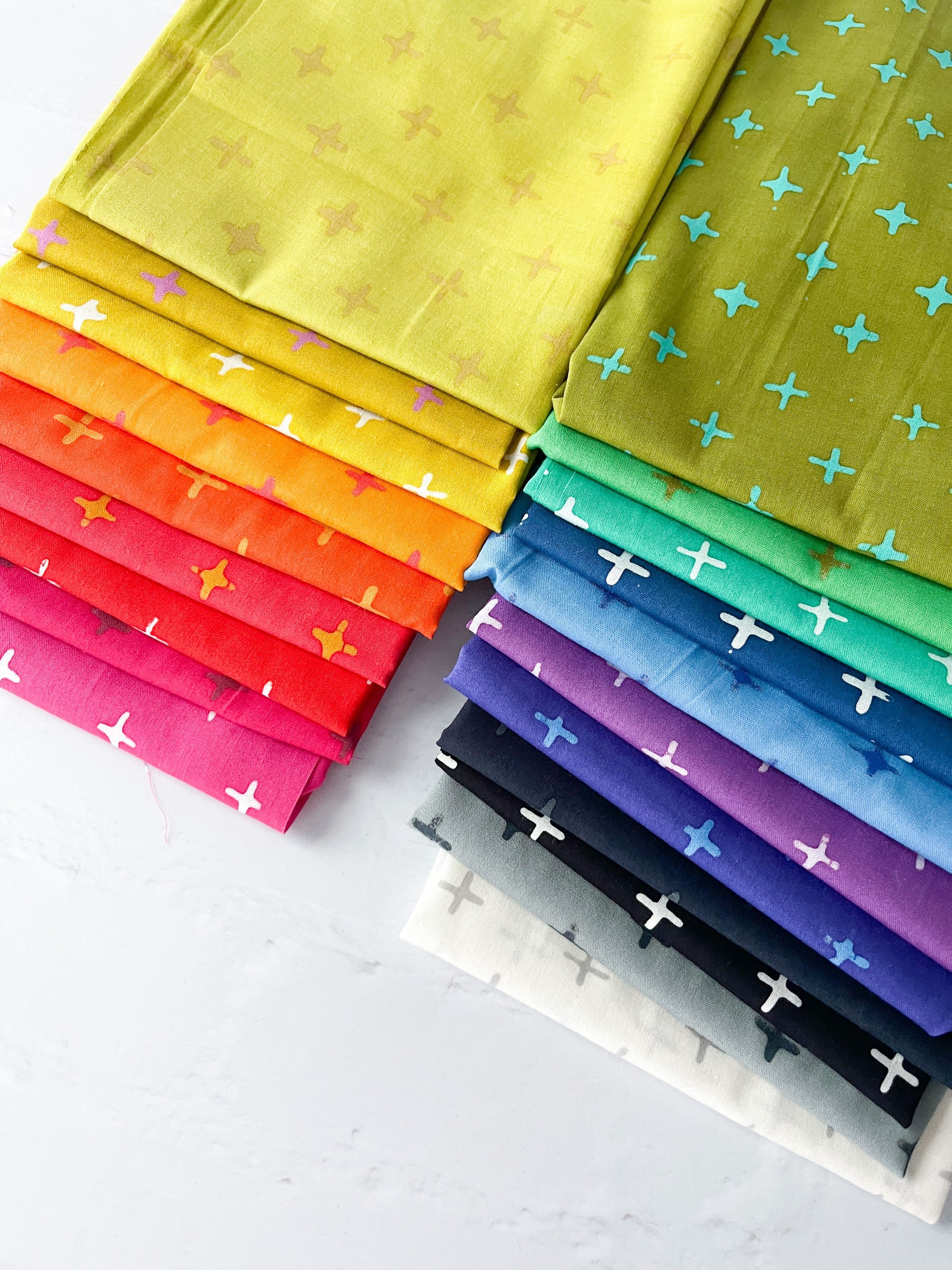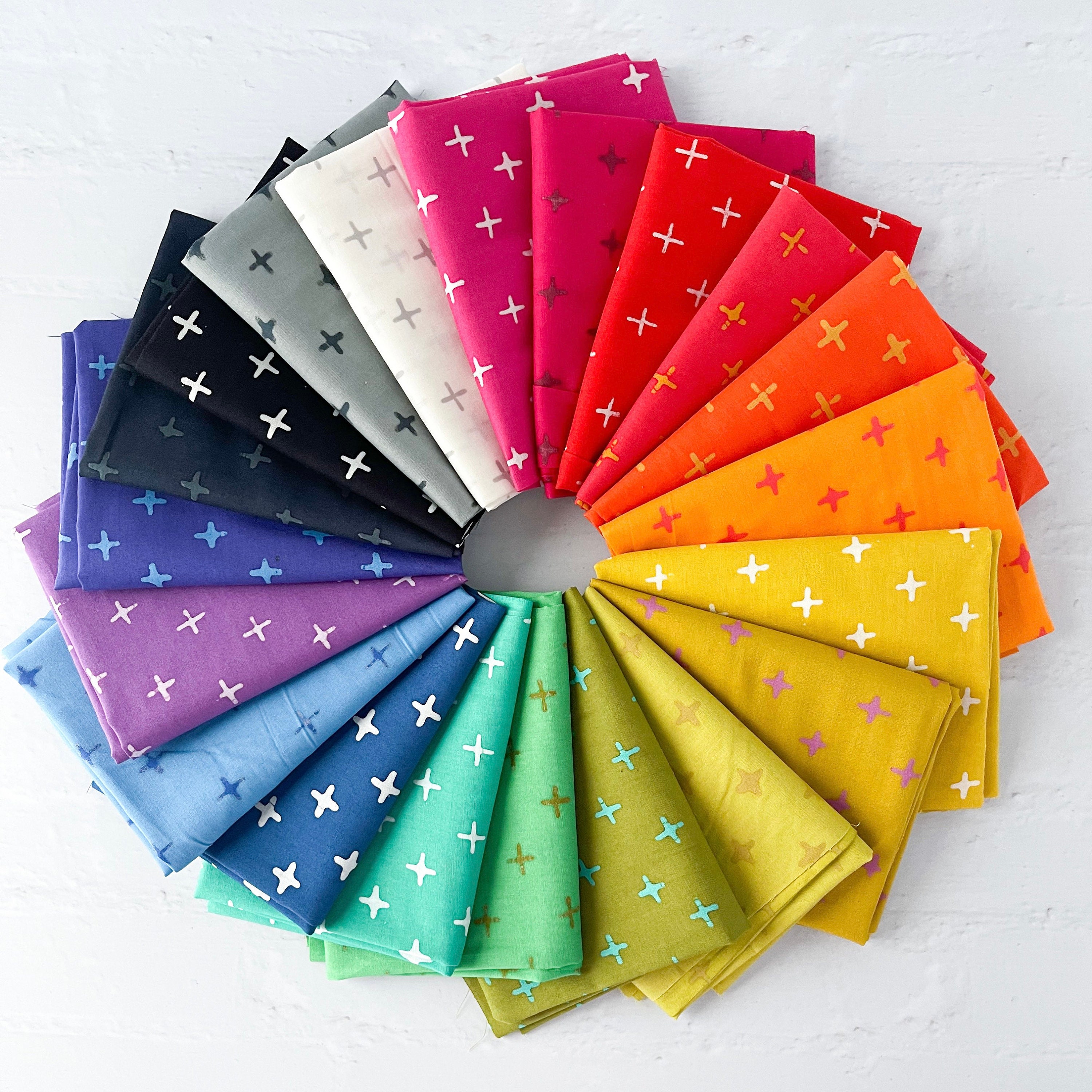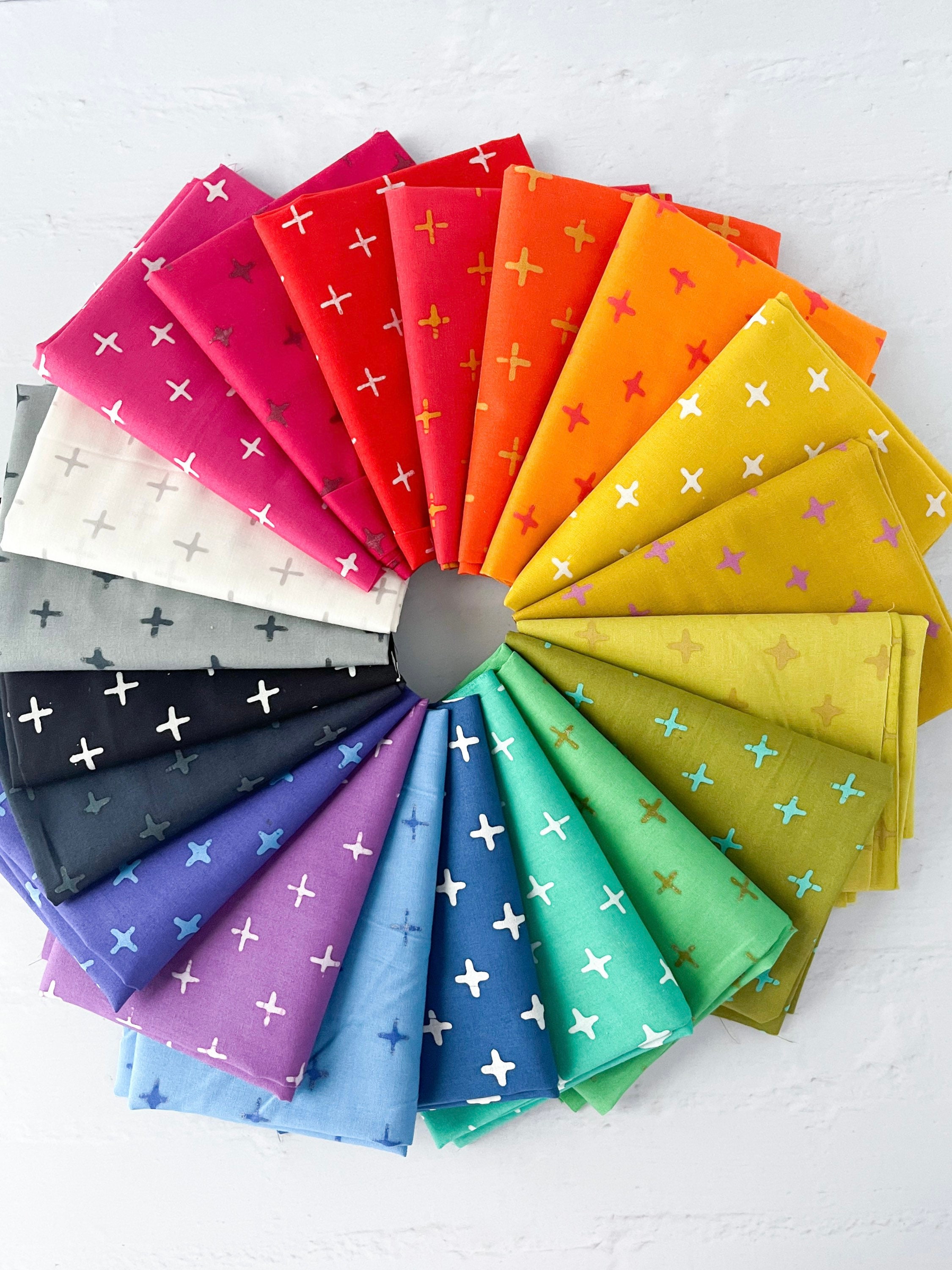 If you loved rainbows, this vibrant collection is for you! This whole color spectrum is handcrafted by Alison Glass. It’s 100% cotton, and altho its a little lighter weight, it can’t definitely be combined with regular quilting cottons. Its also great for garments!