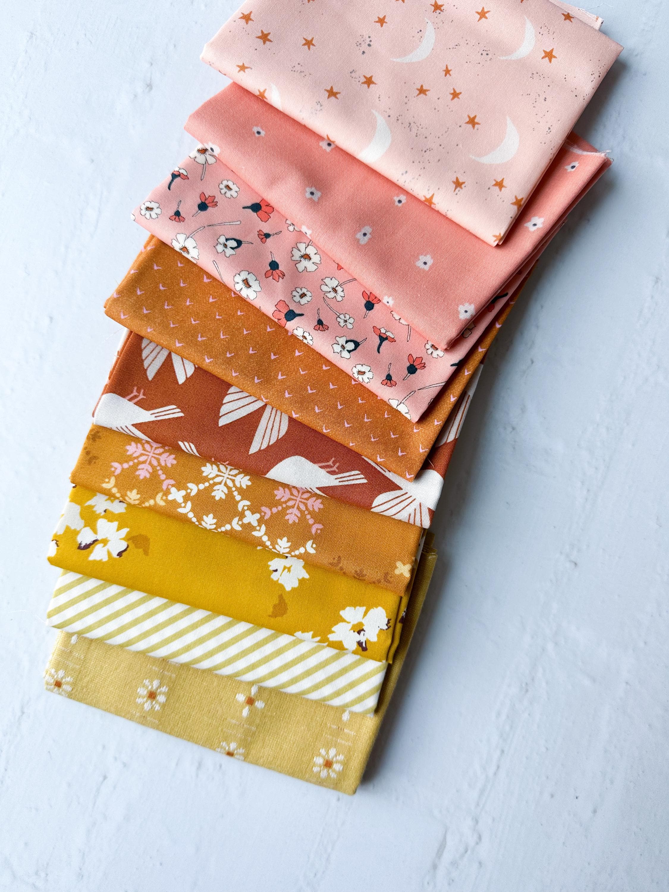 This hand curated 9 piece Fat Quarter bundle can be used for multiple quilt patterns.